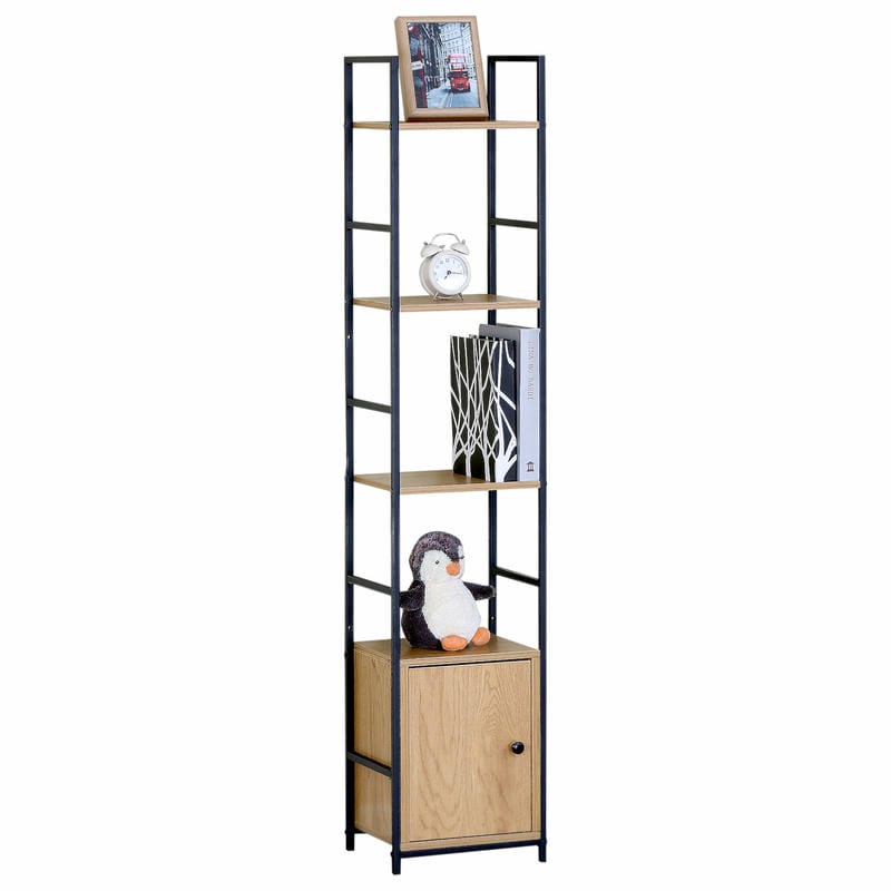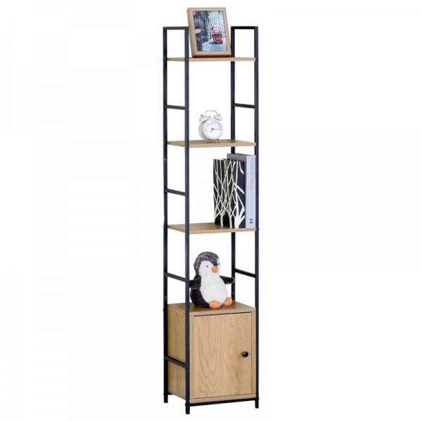 Ραφιέρα ArteLibre ELRIDGE Με Ντουλάπι Δρυς/Μαύρο Μοριοσανίδα/Μέταλλο 29.1x23.5x144cm
