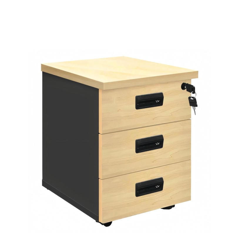 Τροχήλατη συρταριέρα γραφείου με τρία συρτάρια θα αποτελέσει μια καλή λύση αποθήκευσης και οργάνωσης για το γραφείο σας. Το ένα συρτάρι έχει κλειδαριά για την αποθήκευση και προφύλαξη πολύτιμων εγγράφων ή αντικειμένων.