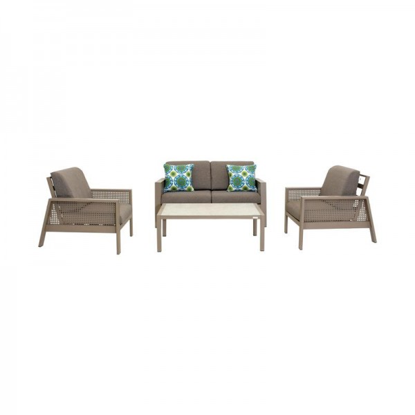 Διαμορφώστε τον κήπο ή το μπαλκόνι σας σε μια γωνιά ηρεμίας και χαλάρωσης για τις ζεστές μέρες του καλοκαιριού με το σετ κήπου Alabama. Ο μοντέρνος σχεδιασμός και τα εξαιρετικής αντοχής υλικά το κάνουν να ξεχωρίζει απο την πρώτη στιγμή. Το σετ αποτελείται απο ένα (1) διθέσιο καναπέ, δύο (2) πολυθρόνες και ένα (1) τραπεζάκι με γυάλινη επιφάνεια.