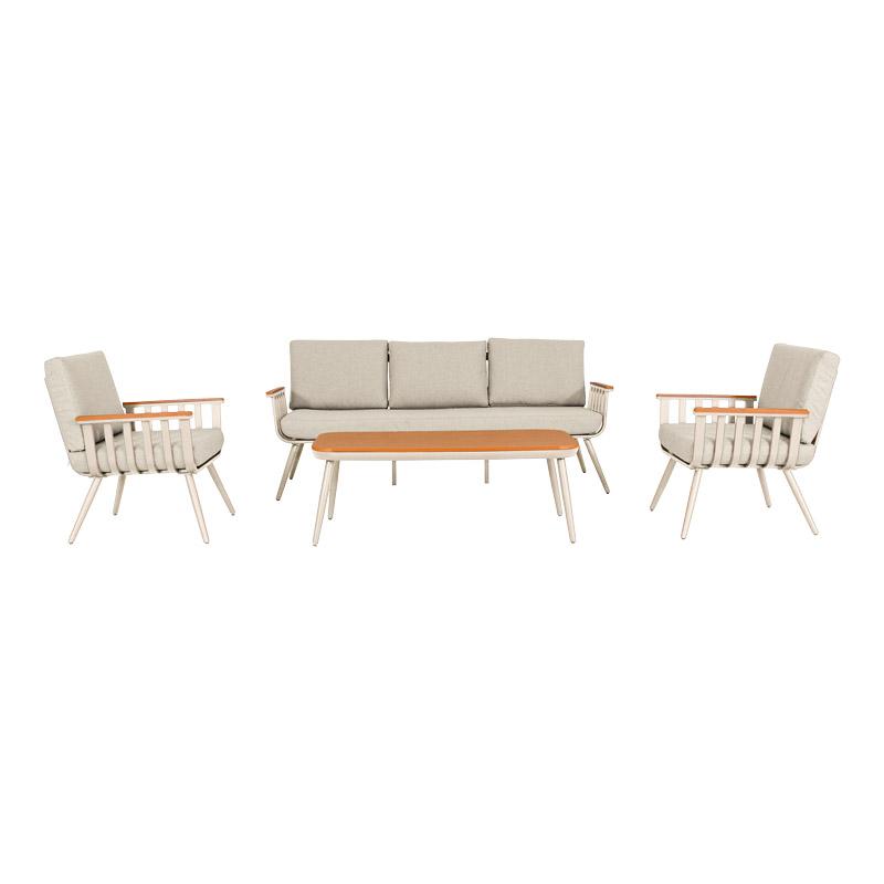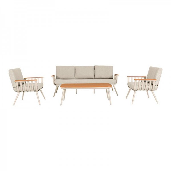 Το σετ "Zenya" είναι μια premium επιλογή για εξωτερικούς χώρους που συνδυάζει τη διαχρονική αισθητική με την άνεση και την ανθεκτικότητα. Περιλαμβάνει έναν τριθέσιο καναπέ, δύο αναπαυτικές πολυθρόνες και ένα ευρύχωρο τραπεζάκι με επιφάνεια polywood, ιδανικό για χαλάρωση ή φιλοξενία στον κήπο, στο μπαλκόνι ή στη βεράντα.