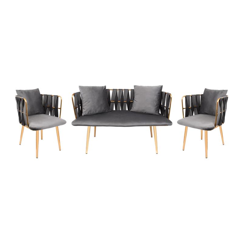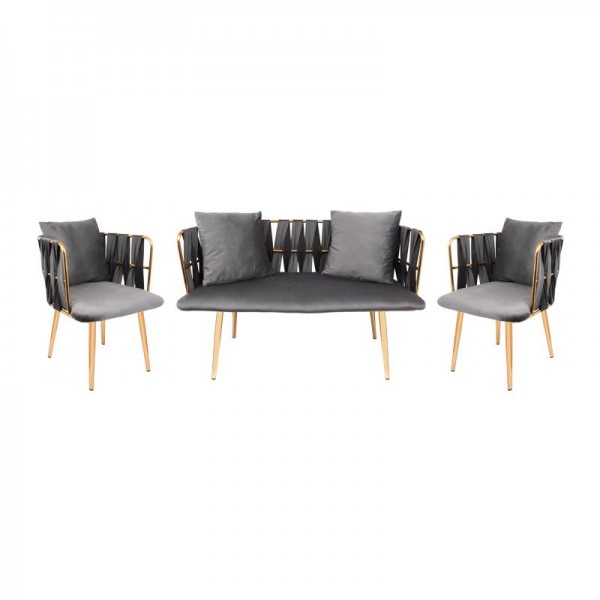 ΣΕΤ ΣΑΛΟΝΙ 3 ΤΕΜΑΧΙΩΝ Fylliana Belt ΜΕ ΜΕΤΑΛΛΙΚΟ ΣΚΕΛΕΤΟ ΚΑΙ ΓΚΡΙ ΧΡΩΜΑ ΥΦΑΣΜΑΤΟΣ