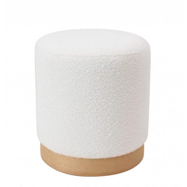 Σκαμπό ArteLibre KENTUCK Με Ξύλινη Βάση Λευκό Ύφασμα Μπουκλέ 38x38x40cm
