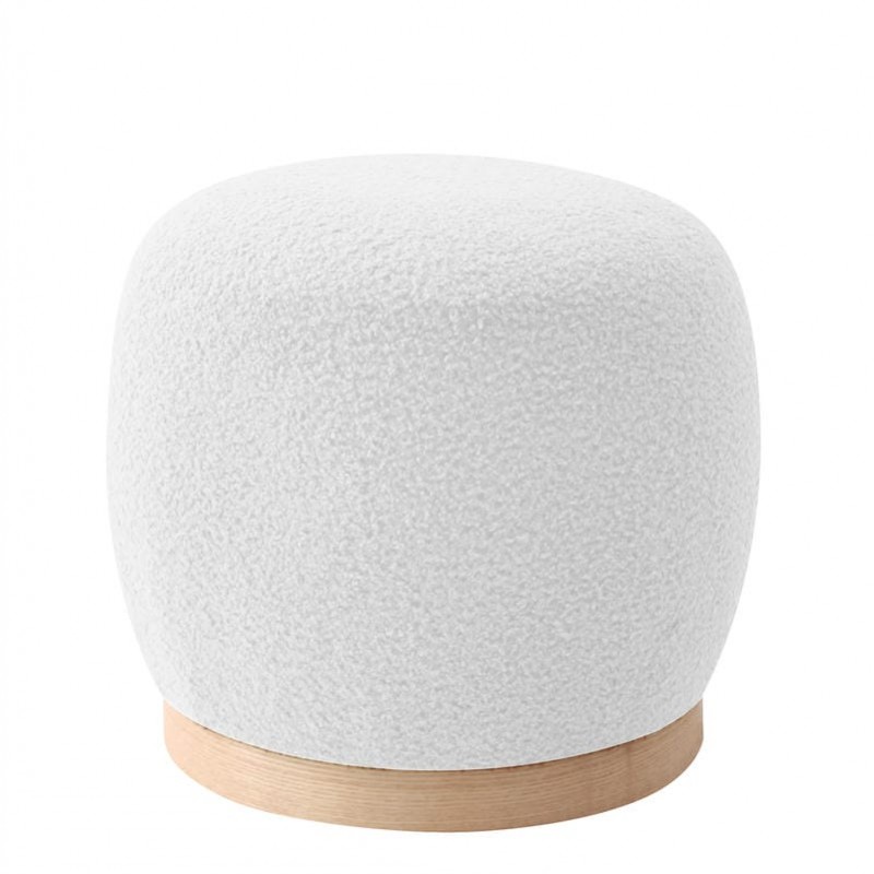 Σκαμπό ArteLibre PRIMULA Με Ξύλινη Βάση Λευκό Ύφασμα Teddy 38x38x41cm