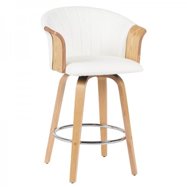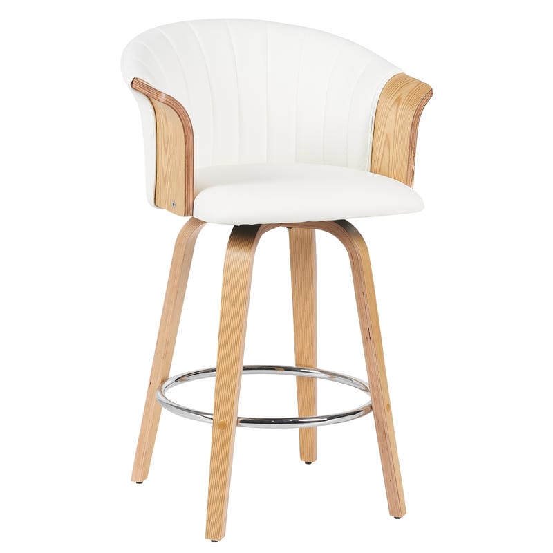 Σκαμπό Bar ArteLibre CASSIAN Λευκό/Φυσικό Ξύλο/PU 50x50x103cm