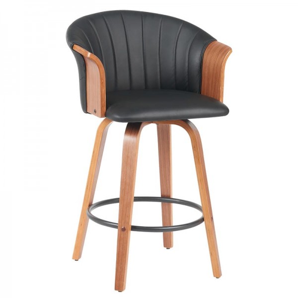 Σκαμπό Bar ArteLibre CASSIAN Μαύρο/Καφέ Ξύλο/PU 50x50x103cm