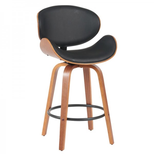 Σκαμπό Bar ArteLibre LYRIAN Μαύρο/Καφέ Ξύλο/PU 52x55x107cm