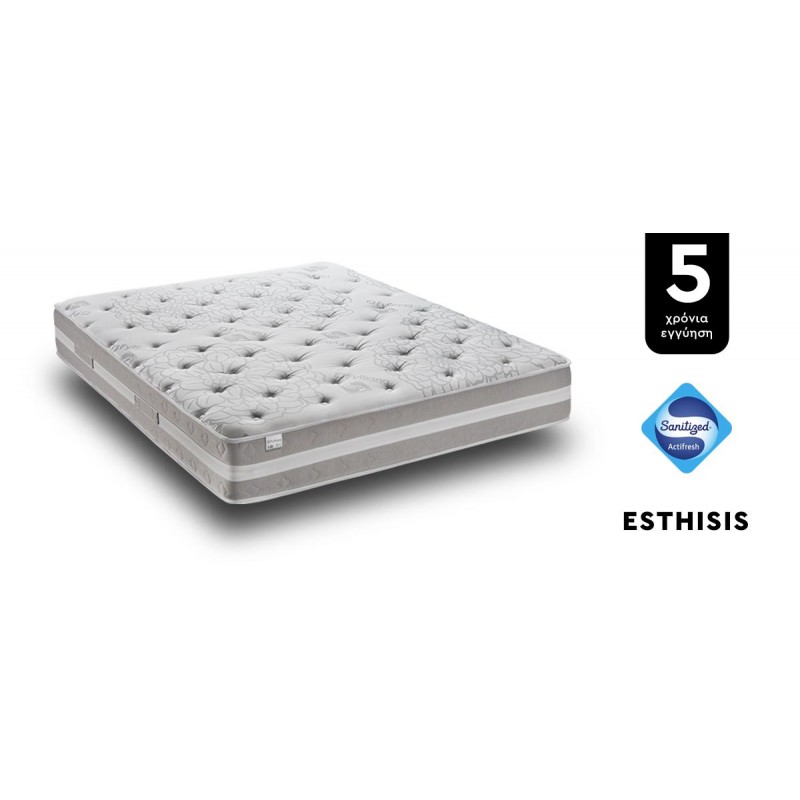Αναζητάτε το τέλειο στρώμα για να εξασφαλίσετε την ιδανική ποιότητα ύπνου; Απολαύστε το ανατομικό στρώμα Esthisis από τη συλλογή μας. Το στρώμα διαθέτει ελατήρια pocket υψηλής ποιότητας με 7 ζώνες στήριξης και 2 διαφορετικές όψεις - μία με μάλλινη επεξεργασία για το χειμώνα και μία με βαμβακερή επεξεργασία για το καλοκαίρι. Ένα στρώμα που έχει επεξεργαστεί με την μέθοδο sanitized. Με δυνατότητα επιλογής ειδικής διάστασης κατόπιν παραγγελίας.