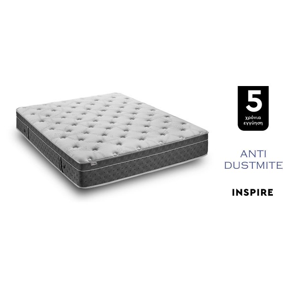 Το στρώμα INSPIRE δημιουργεί ένα υγιεινό και ισορροπημένο περιβάλλον ύπνου, προσφέροντας καθημερινά την αίσθηση της φρεσκάδας και της σταθερότητας. Το ενσωματωμένο ανώστρώμα EUROTOP προσφέρει επιπλέον άνεση και υποστήριξη, ενισχύοντας την εμπειρία του ύπνου. Η τεχνολογία Anti Dust Mite περιέχει φυσικά αιθέρια έλαια λεμονιού, λεβάντας και ευκαλύπτου, καταπολεμώντας τα ακάρεα και προσφέροντας αντιμικροβιακή προστασία μεγάλης διάρκειας.