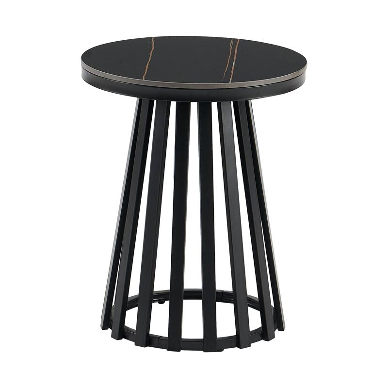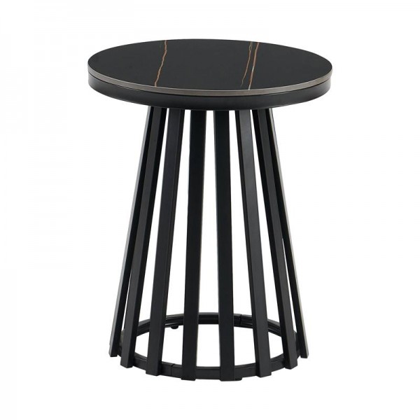 Αυτό το στρόγγυλο τραπεζάκι γωνίας με κεραμικη επιφάνεια πάχους 1,2εκατοστών, που στηρίζεται σε μια επίσης στρόγγυλή μεταλλικη κατασκευή με πολλές δοκούς που ενώνονται μεταξύ τους με δακτυλίους στην εσωτερική πλευρά. Το αποτέλεσμα είναι ένα μοναδικό έπιπλο που συνδυάζει την πρακτικότητα με το εντυπωσιακό design, ιδανικό για μοντέρνους και minimal χώρους.