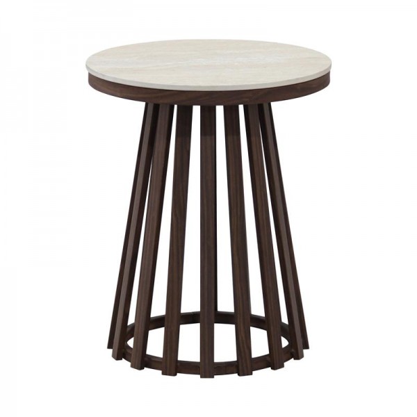 Αυτό το στρόγγυλο τραπεζάκι γωνίας με κεραμικη επιφάνεια πάχους 1,2εκατοστών, που στηρίζεται σε μια επίσης στρόγγυλή μεταλλική κατασκευή με πολλές δοκούς που ενώνονται μεταξύ τους με δακτυλίους στην εσωτερική πλευρά. Το αποτέλεσμα είναι ένα μοναδικό έπιπλο που συνδυάζει την πρακτικότητα με το εντυπωσιακό design, ιδανικό για μοντέρνους και minimal χώρους.
