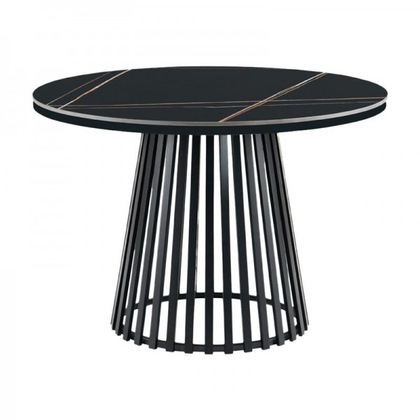 Αυτό το στρόγγυλο τραπέζι με κεραμικη επιφάνεια πάχους 1,2εκατοστών, που στηρίζεται σε μια επίσης στρόγγυλή μεταλλικη κατασκευή με πολλές δοκούς που ενώνονται μεταξύ τους με δακτυλίους στην εσωτερική πλευρά. Το αποτέλεσμα είναι ένα μοναδικό έπιπλο που συνδυάζει την πρακτικότητα με το εντυπωσιακό design, ιδανικό για μοντέρνους και minimal χώρους τραπεζαρίας.