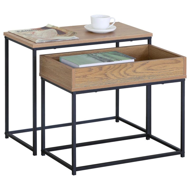 Τραπεζάκι Σαλονιού ArteLibre BELLINGTON Δρυς/Μαύρο Μοριοσανίδα/Μέταλλο 60x30x50/55x30x45cm Σετ 2Τμχ
