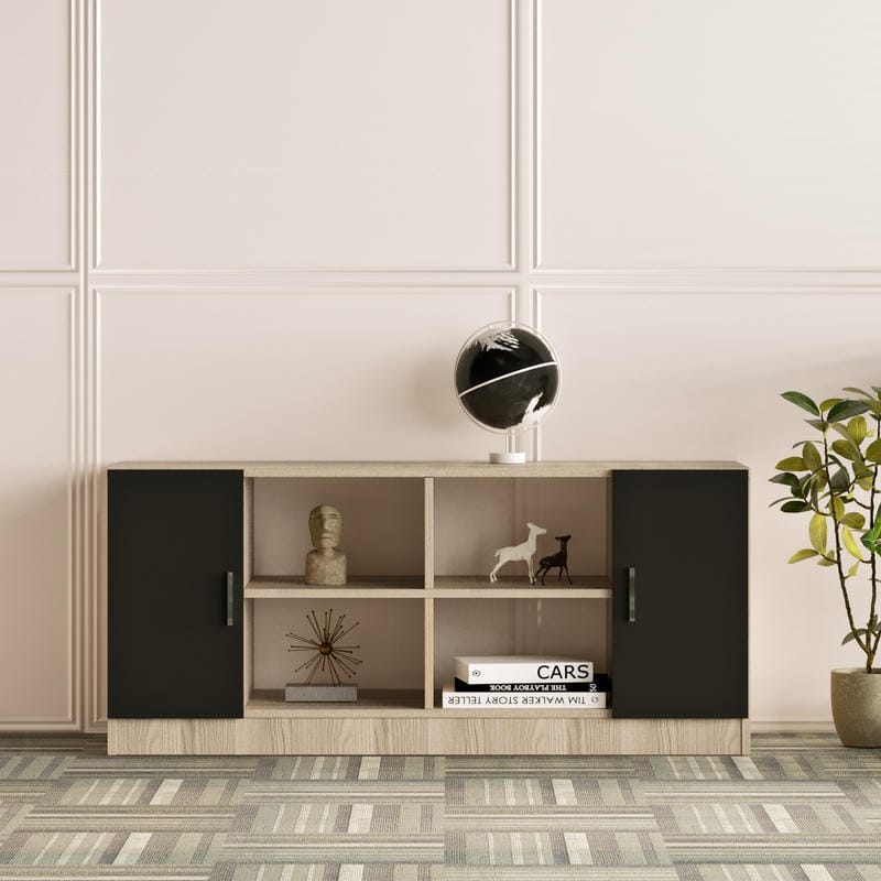 Βιβλιοθήκη ArteLibre EDMONTON Οξιά/Μαύρο Μοριοσανίδα 139.8x46.3x61.8cm