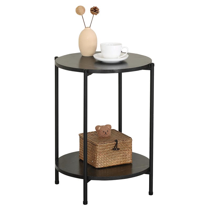 Κατασκευασμένο από μοριοσανίδα υψηλής ποιότητας με μαρμάρινο φινίρισμα και ανθεκτικό μαύρο μέταλλο, το τραπεζάκι εξασφαλίζει μακροχρόνια χρήση και αντοχή στις καθημερινές φθορές.