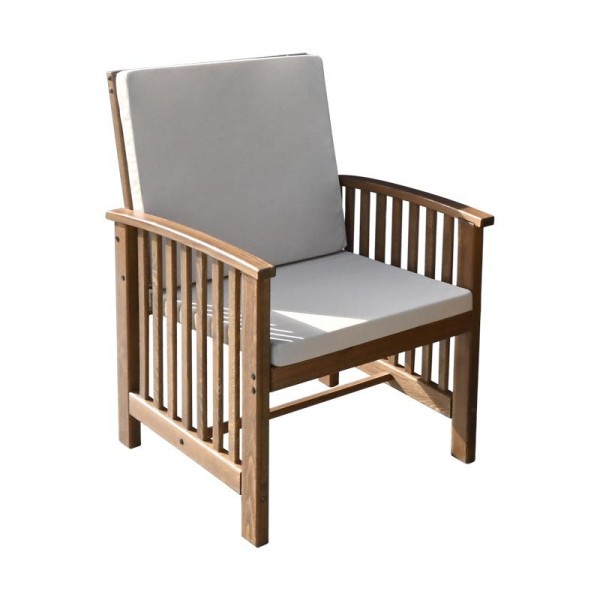 Εξαιρετικά κομψή και άνετη καρεκλοπολυθρόνα, ιδανική για να αναδείξει τον εξωτερικό σας χώρο! Κατασκευάζεται από μασίφ ξύλο οξιάς, ώστε να είναι ανθεκτική στις καιρικές συνθήκες. Διαθέτοντας μπράτσα, πλάτη και μαξιλάρια καθίσματος και πλάτης, προσφέρει άνετο κάθισμα. Τα μαξιλάρια είναι από ύφασμα polycotton, εξαιρετικής αντοχής στον ήλιο.Με βαφή εμποτισμού ξύλου βάσεως νερού που μπλοκάρει αποτελεσματικά το νερό και την υγρασία χάρη στην ειδική τεχνολογία Aqua Stop.
