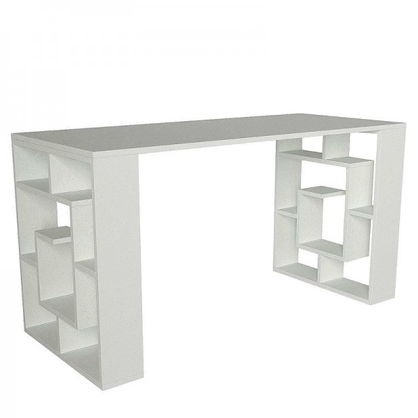 Γραφείο με στιβαρό σκελετό που εξασφαλίζει μια σταθερή επιφάνεια εργασίας. Η επιφάνεια εργασίας προσφέρει μεγάλο χώρο για να κάνετε τις καθημερινές σας εργασίες άνετα και γρήγορα. Τα πόδια του μπορούν να χρησιμοποιηθούν ως ράφια για να προσφέρει άπλετο αποθηκευτικό χώρο για την αποθήκευση βιβλίων, εγγράφων και χρηστικών αντικειμένων.